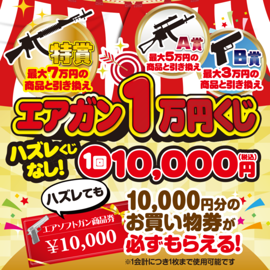 エアソフトガン 1万円くじ開催中!