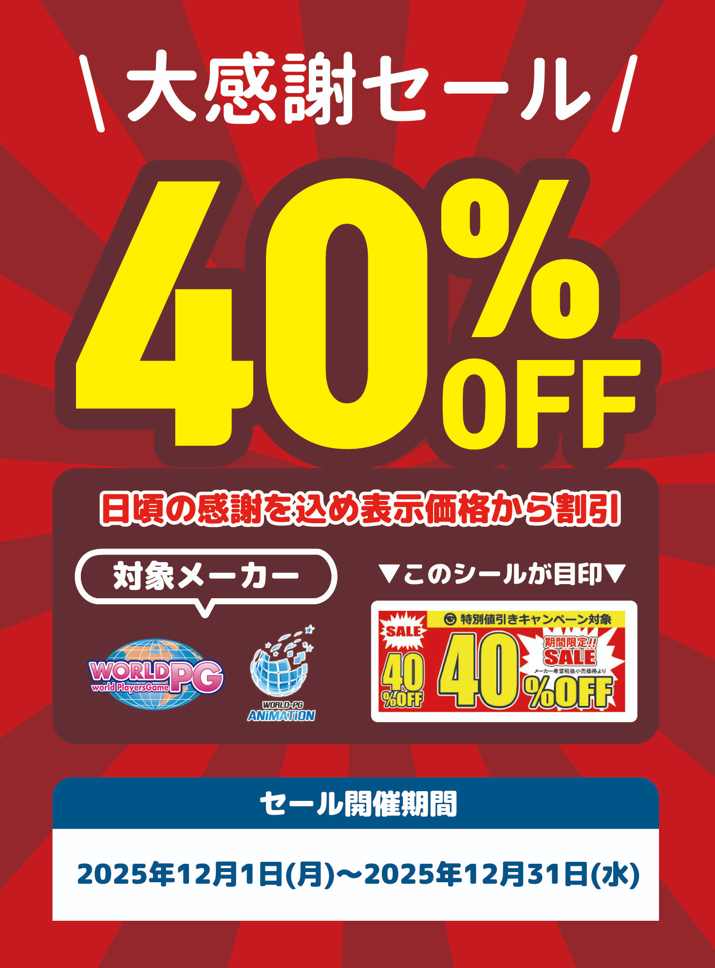 ・WORLD PG シールの付いていている商品40%OFF