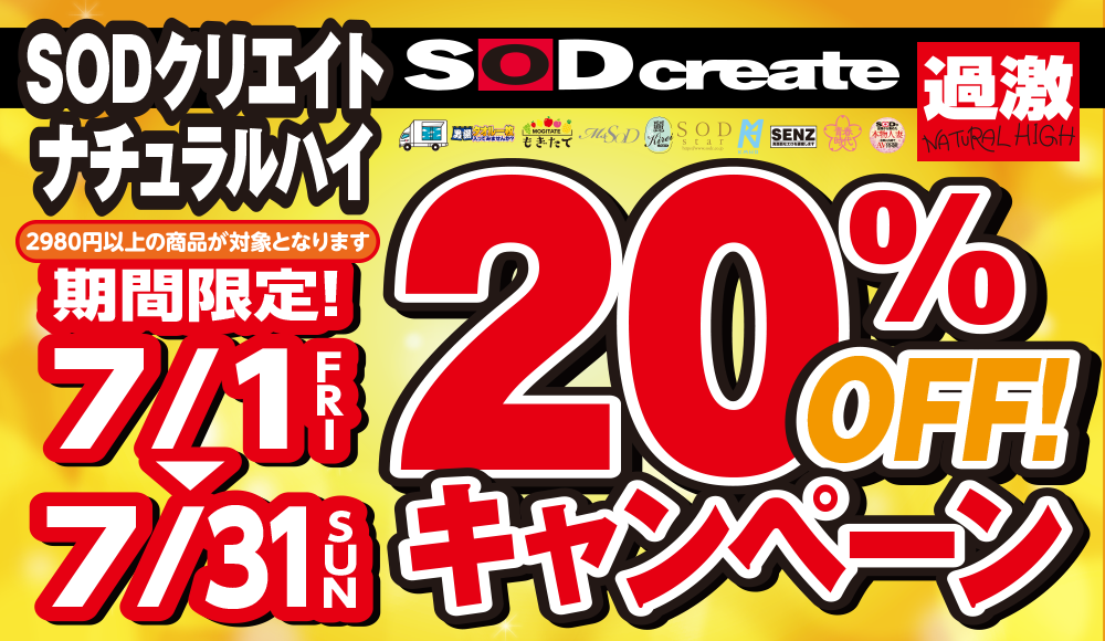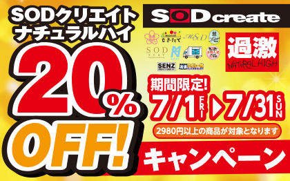 「SODクリエイト」「ナチュラルハイ」の2メーカーが20%OFF!!