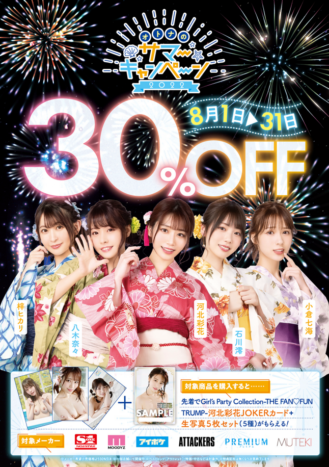 「S1」 「PREMIUM」 「MOODYZ」 「アイデアポケット」 「ATTACKERS」「MUTEKI」の6メーカー対象!