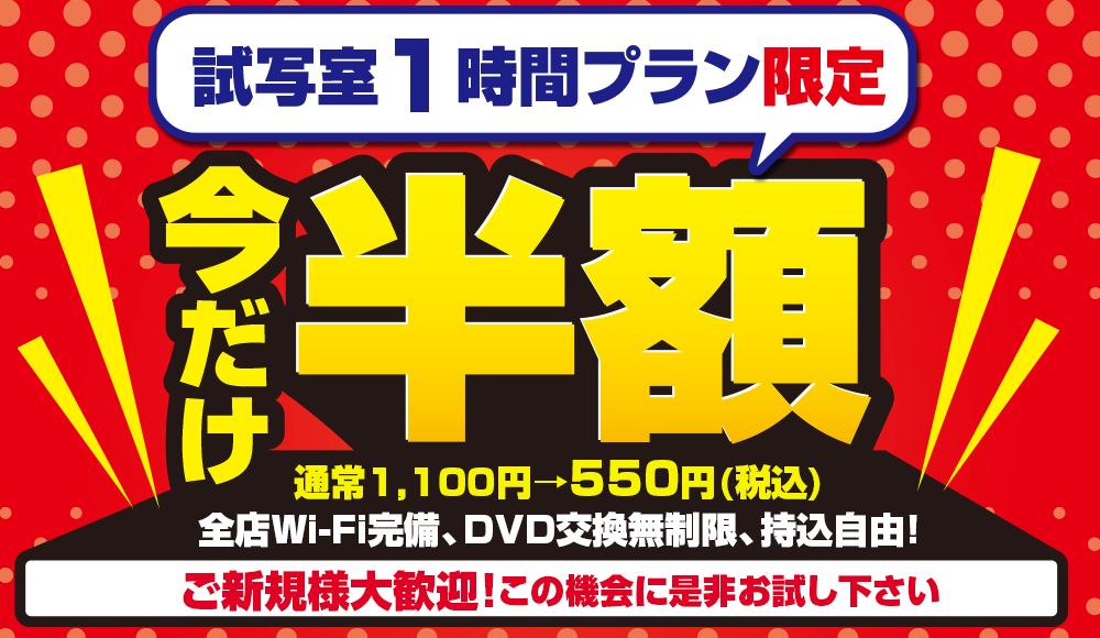 「今だけ!個室ビデオ(試写室)1時間プラン【半額】」