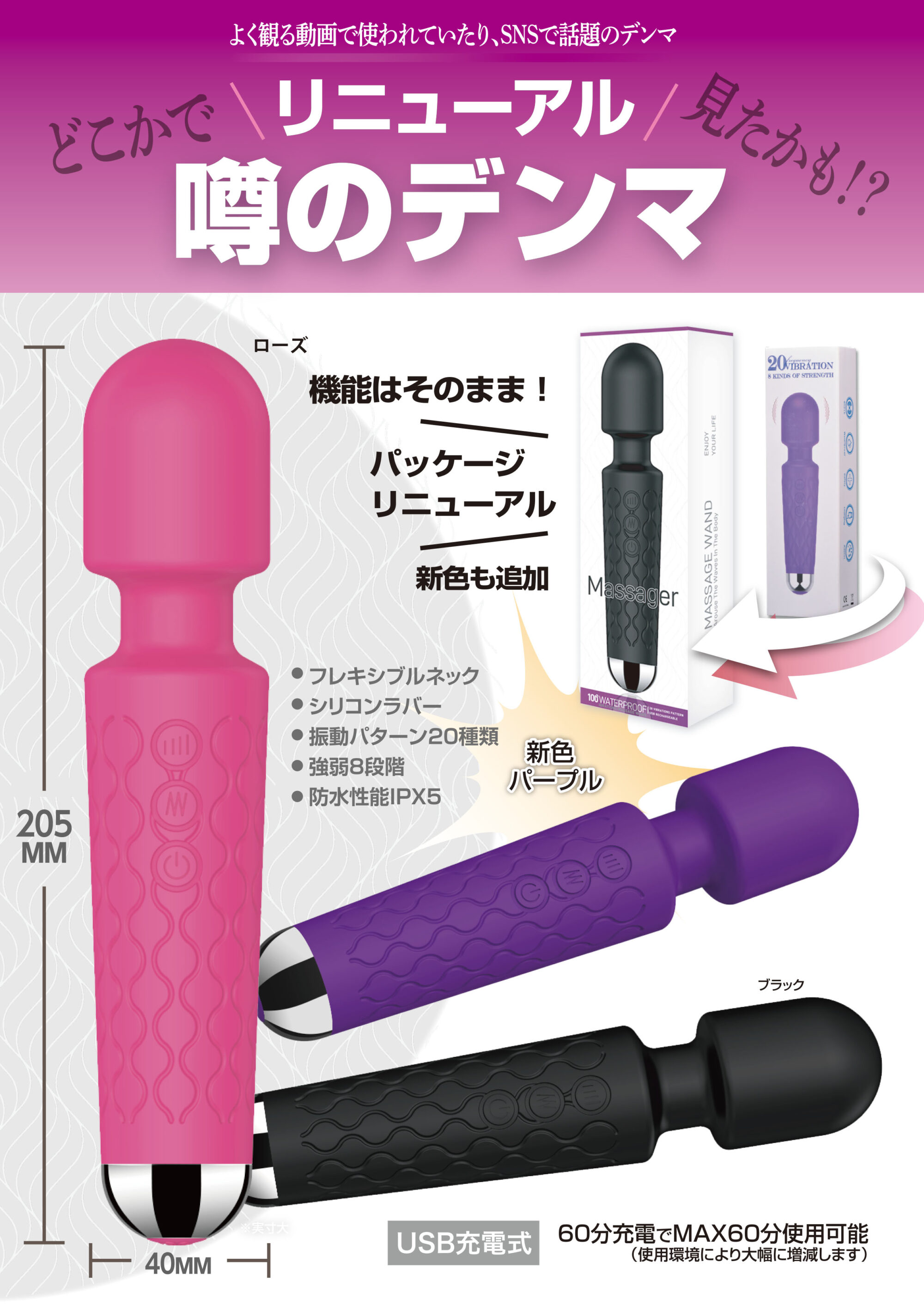 New 噂のデンマ(ローズ・パープル・ブラック)