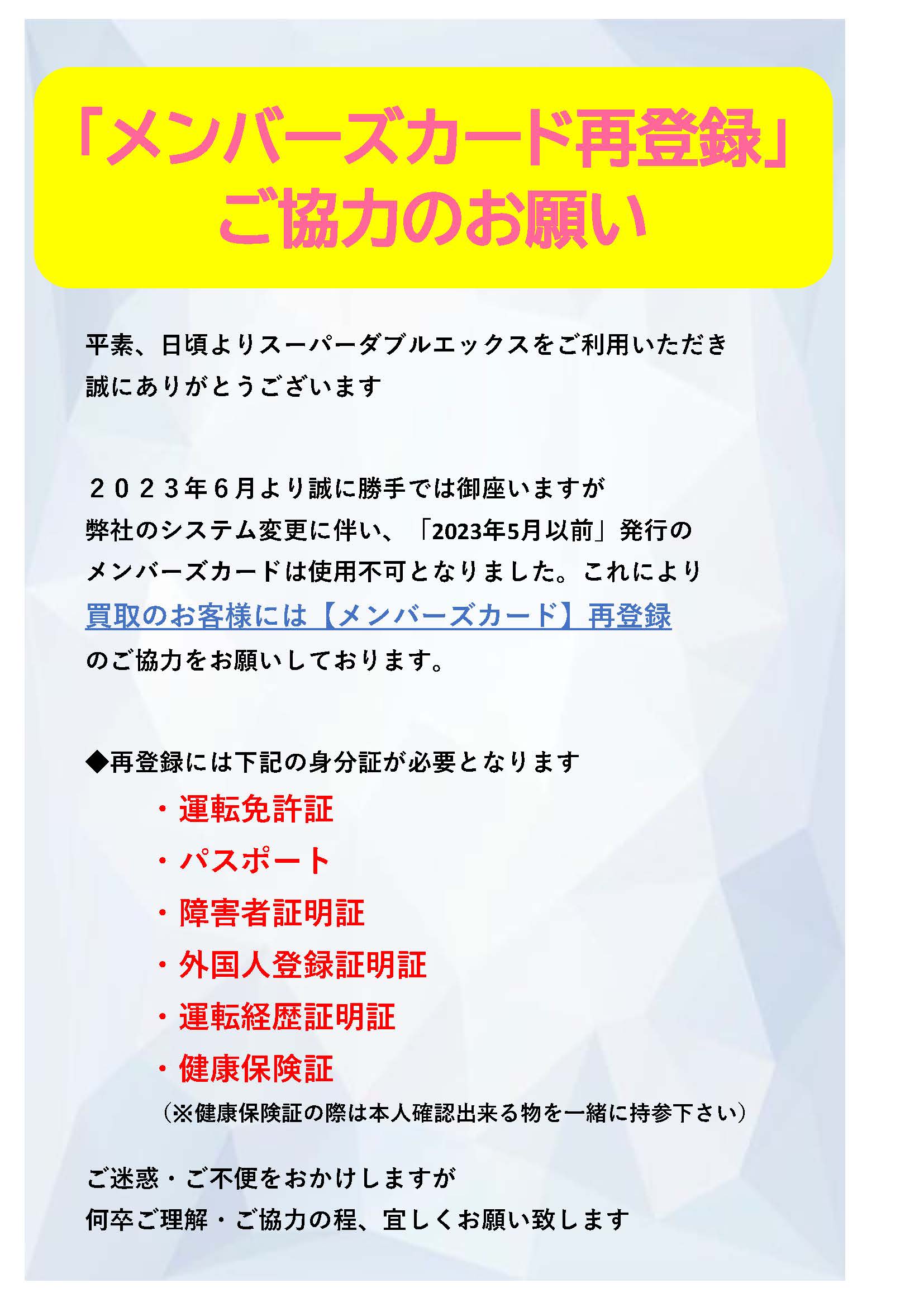 『メンバーズカード再登録』ご協力のお願い